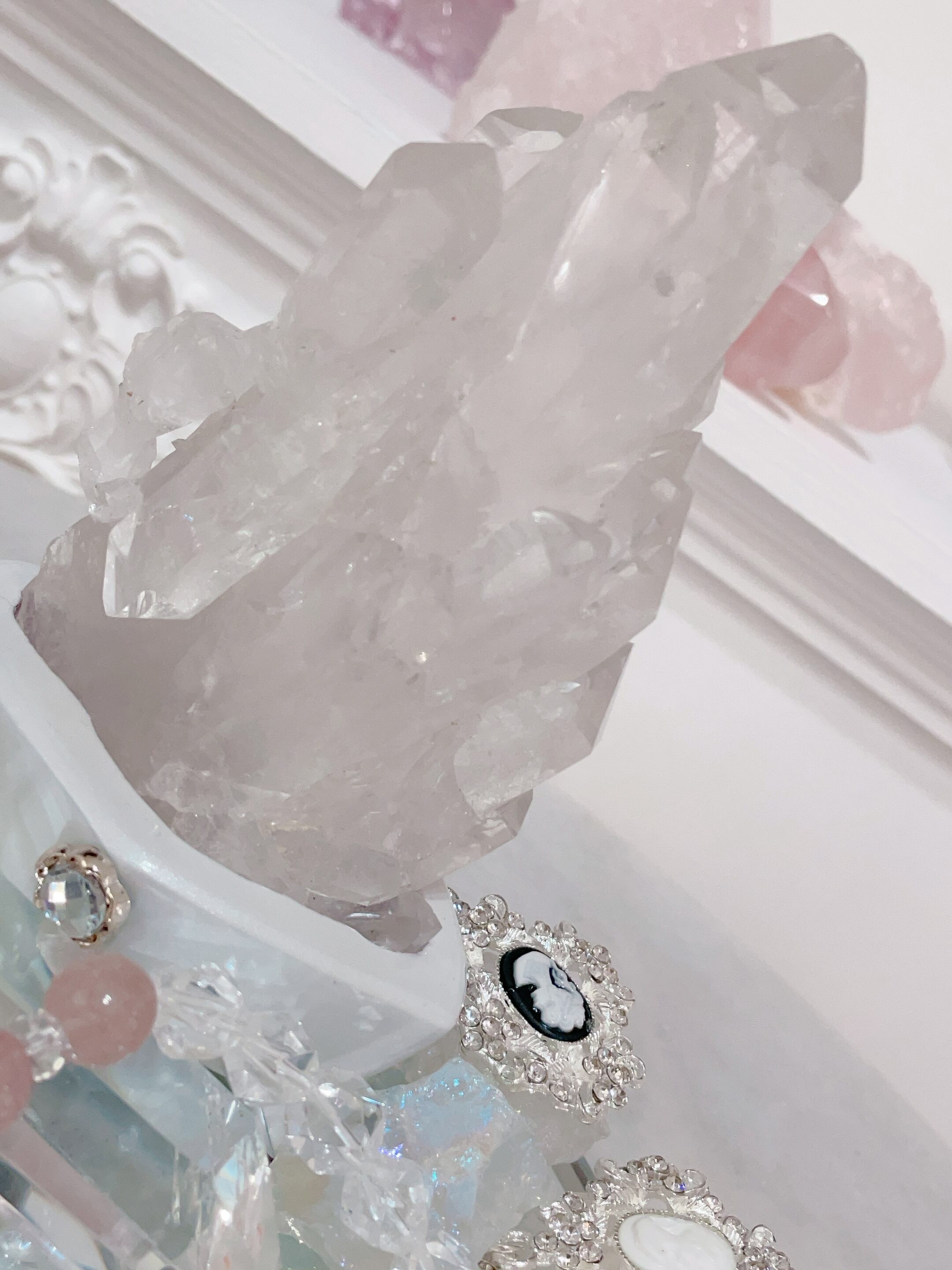 水晶クラスターの魅力には、その存在感があります。まるで自然界の宝石のような美しさで、部屋のインテリアにも最適です。また、エネルギーを整える効果があるとも言われており、癒しのアイテムとしても人気です。